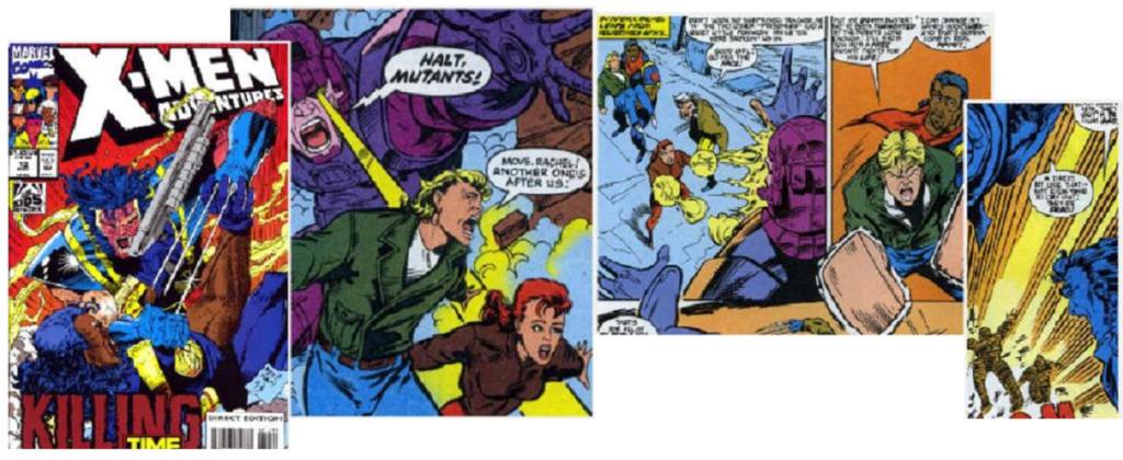 X-Men Adventures #13 kicks off with a scene that fans of Days of Future Past (Part 1) will recognize, albeit with a twist – our mystery mutants from the animated series make an appearance, sporting some fresh (but also much more familiar) looks: