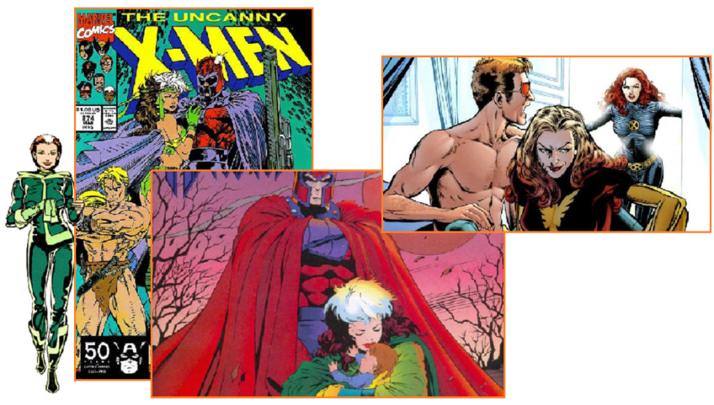 Rogue and Magneto’s relationship status? It’s complicated. They tied the knot in the Age of Apocalypse, where Magneto’s powers came with the handy feature of Rogue-proofing.