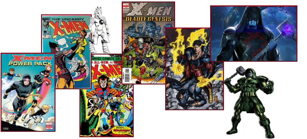 Xavier’s flashy purple and gold exo-suit is straight from the cover of Uncanny X-Men #275. Although, in the comic, it’s more of a silver and blue number. Where’s Jumbo Carnation, am I right? This is the very issue where the X-Men discover Xavier’s not pushing up daisies but is actually out gallivanting with the Shi’ar among the stars, mirroring his dramatic exit in Graduation Day.