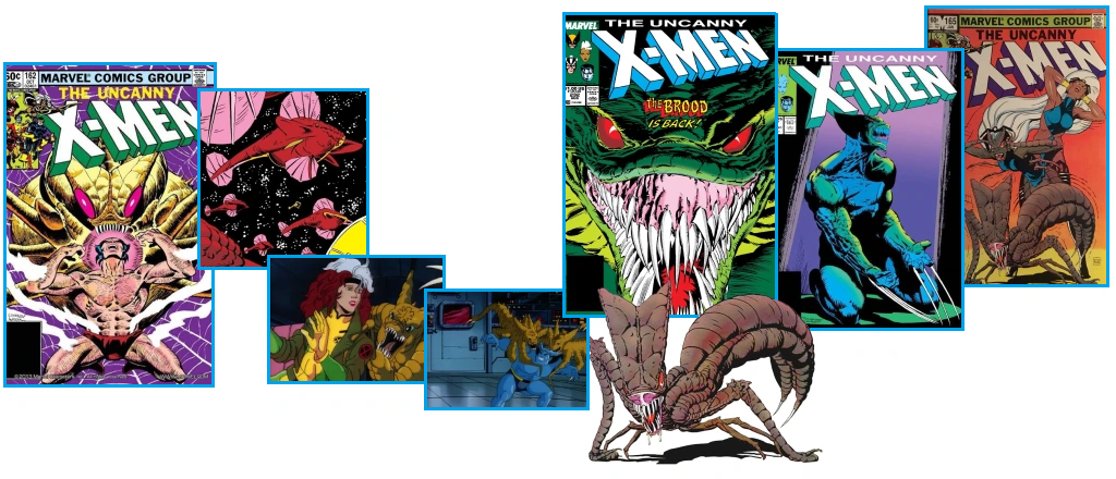 In Uncanny X-Men #231, a downed Acanti spacecraft, reminiscent of this episode’s beginning, crashed on Earth, releasing a swarm of Brood that overwhelmed the local residents. The X-Men faced a tough battle to contain them until issue #235.