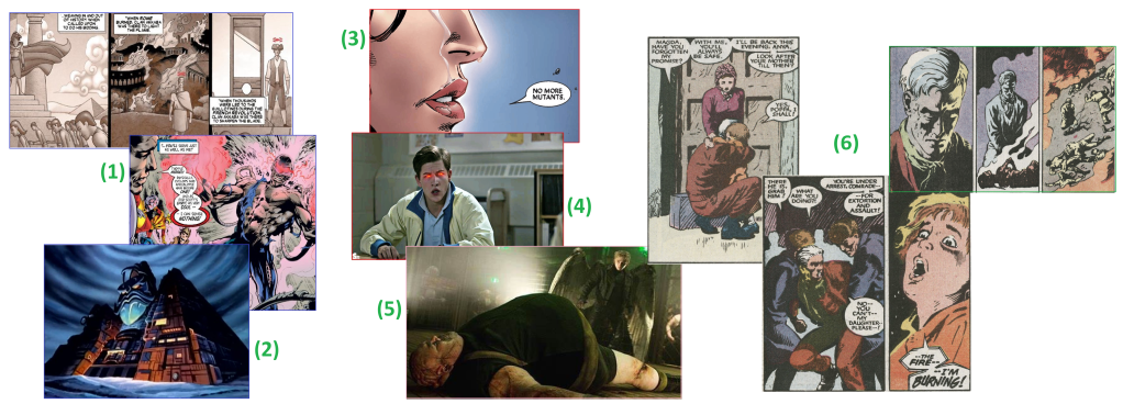 (1) In the film, Apocalypse aims to transfer his consciousness into another mutant, thereby acquiring their abilities. This plot point echoes the events from the Adventures of Cyclops and Phoenix mini-series and is further developed when he takes over Cyclops’ body in The Twelve. Apocalypse’s plan includes targeting Charles for this transfer. Charles, maintaining continuity with the first movie, provides the opening narration.