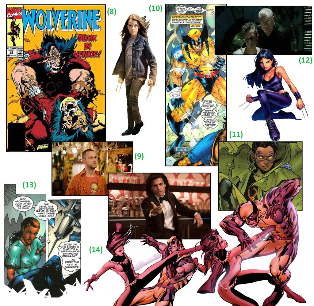 (8) X24 is a clone of Wolverine, similar to a robotic counterpart named Albert, created by Pierce in the comics. In the Weapons of X storyline, Beast produces multiple Logan clones for his twisted experiments.