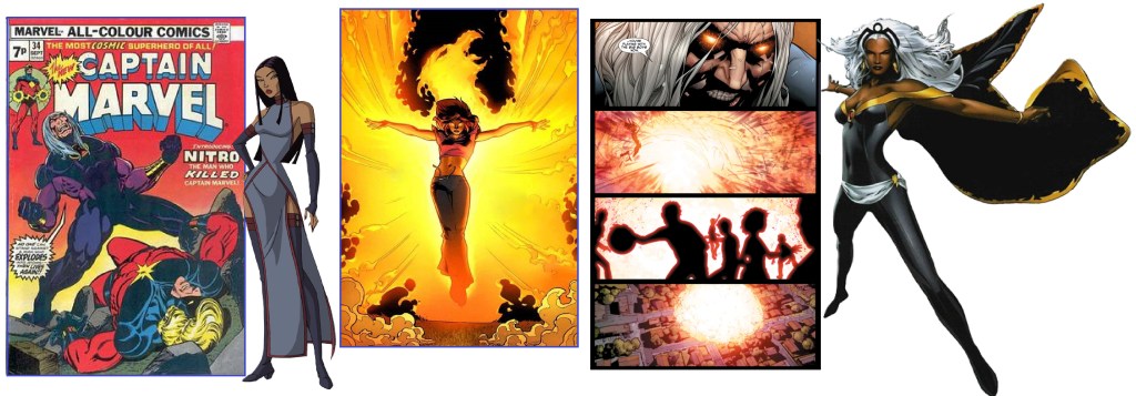 The Brotherhood use Nitro against his will to blow up the MRD bunker where all the data on every registered mutant is kept. Rogue is distressed by Nitro’s pleas but can’t stop the Brotherhood’s plan. Nitro explodes levelling the bunker and the Brotherhood barely make it out on time. They realize Nitro is actually a danger to them and decide to take him to Genosha. Psylocke uses her psychic abilities to keep Nitro powered-down as their stolen plane zips to the island.