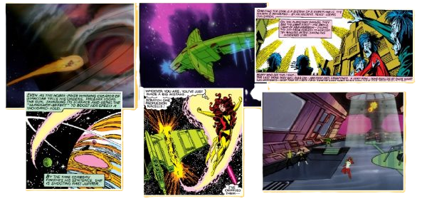 Like most of the adaption, scenes in this episode replicate many of the panels from the comics, this time action from Uncanny X-Men #135-136.