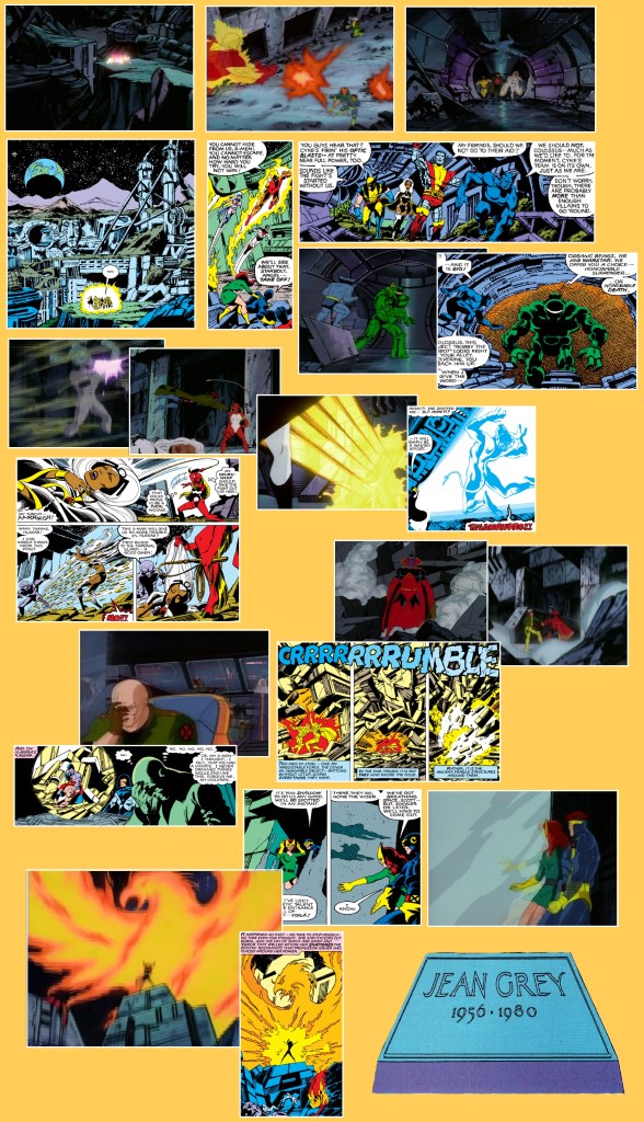 The animated adaptation makes several adjustments from the original comic Uncanny X-Men #137. One significant difference is the portrayal of the Shi’ar Empire’s involvement. In the comic, the Shi’ar Imperial Guard plays a more prominent role in the climactic battle, whereas the animated series focuses more on the emotional and psychological aspects of Jean’s struggle. Additionally, the comic’s darker and more intense moments are toned down in the animation, but despite these changes, the core conflict and the emotional weight of Jean’s decision remain intact.