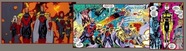 The Acolytes, led by Fabian Cortez, first appeared in X-Men #1, the initial arc of which is the inspiration of this episode. They include Chrome, Unuscione, Frenzy, Delgado and Milan, as well as Gambit’s friend Byron Caley, the mutant known as Burner. The term they use for ordinary human beings, ‘flatscan’ is heard throughout the episode. Some of the Genoshan mutant they free are wearing Genoshan Mutate Costumes, as seen in the X-Tinction Agenda.