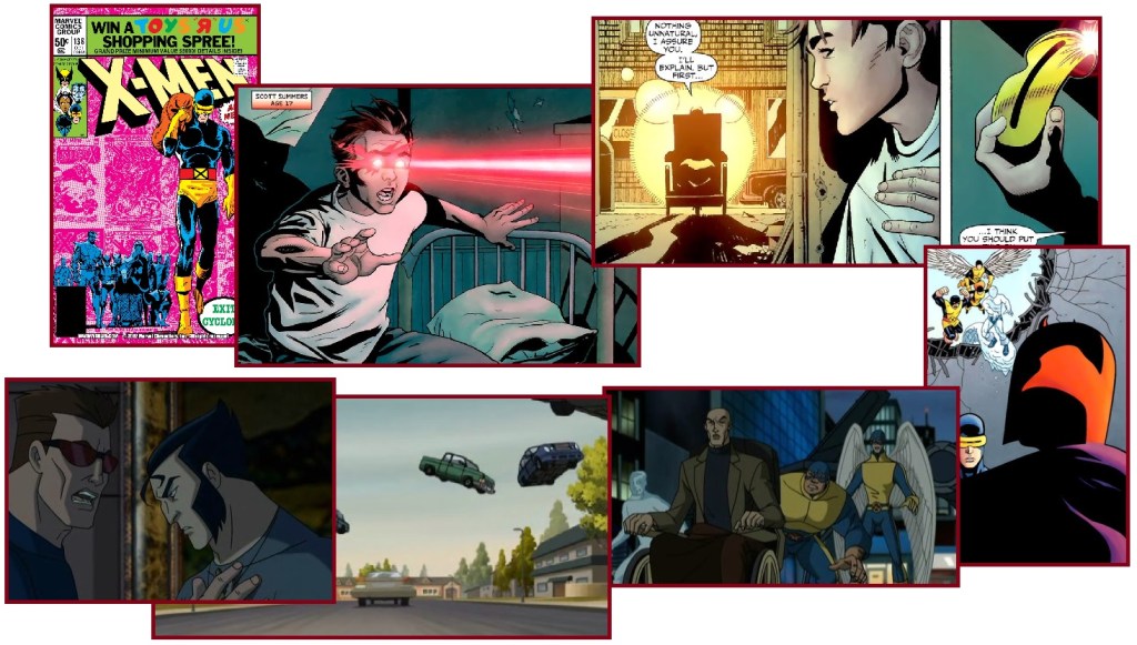 We see Scott’s powers activate for the first time. We see various versions of this throughout the franchise, including No Mutant Is An Island in X-Men season three, X-Men Origins: Wolverine and X-Men: Apocalypse.