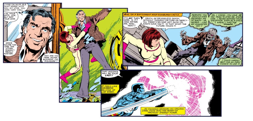 Proteus makes another move during one of Joseph’s press conferences. This time, Moira is prepared and threatens to use a laser to kill her son if necessary. Just as tensions reach a boiling point, Professor X arrives and offers a different solution. He manages to persuade Proteus to allow him into his mind, aiming to calm the troubled mutant. The Professor’s efforts pay off, and he successfully soothes Proteus, bringing a momentary peace to the chaos. Proteus is returned to isolation, but not before he and his father, Joseph, have a chance to reconcile, adding a poignant closure to their tumultuous relationship.