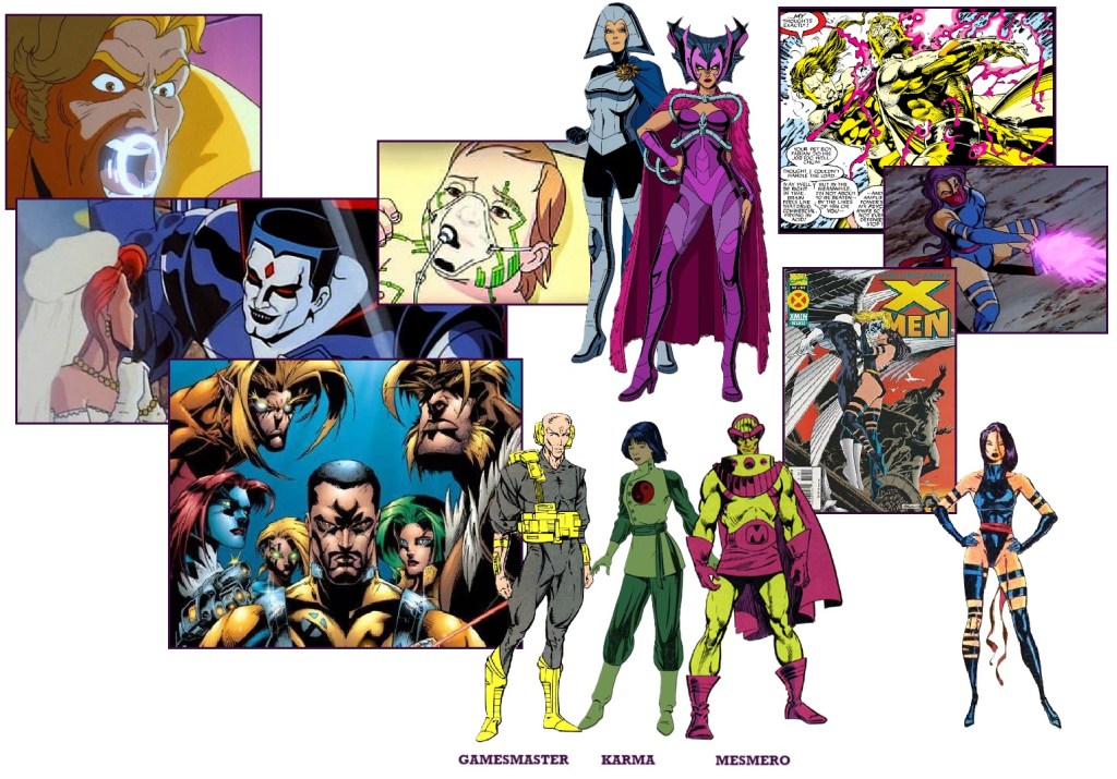 Psychics seen in the cylinders in this episode are the omnipathic Gamesmaster, the New Mutant Karma and villain Mesmero.