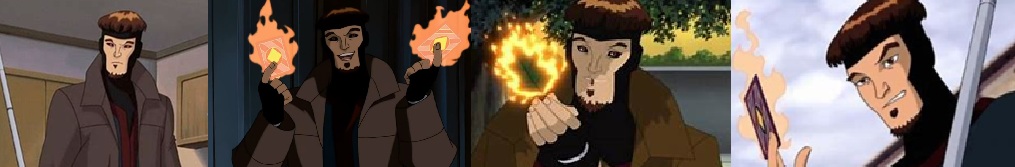 When searching for the whereabouts of Apocalypse’s tomb, Gambit teamed up with Sabretooth and Wolverine in the search [Dark Horizon]. Remy later kidnapped Rogue, taking her to New Orleans and offering her a chance of freedom from the X-Men. After they run into Julien Boudreaux, Gambit used Rogue’s absorbed knowledge of the people who attacked them to try and free his own adopted father. Initially angry that she had been used once again, Rogue angrily left his side, telling him she didn’t care about him. However, Gambit gave her a playing card, the Queen of Hearts, to signal his thanks and affection [Cajun Spice]. A vision of the future revealed that one day, Gambit would join the X-Men [Ascension].