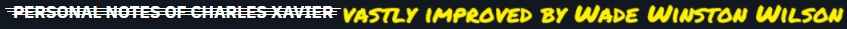 NOTE FROM PROFESSOR CHARLES XAVIER: My former records show a previous listing for a ‘Wade Wilson’ operating with a group called Team X at the time of the Chernobyl disaster in April 1986. However, these records, and all mention of this mercenary, apparently known as Wade Wilson, have been removed. The reasons for this are unknown. Perhaps he never existed or was ‘pruned’ from the timeline by the TVA. Deadpool apparently has knowledge of this variant, insisting that he himself killed the ‘silent <expletive removed>, <expletive removed>’ and he “should never have been written in the first place.” As I have no conscious wish to telepathically probe Deadpool’s brain to discover the meaning behind his words, I fear this discrepancy will never be solved.