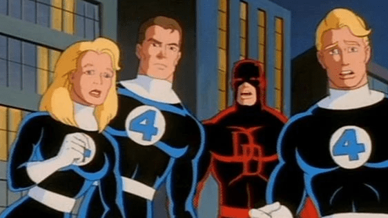 Daredevil appears in this episode as a test for the character, to see if he could carry his own animated series. The series never materialised. However, the Fantastic Four are the first Marvel superheroes Daredevil ever represents, taking them on as clients in Daredevil #2.