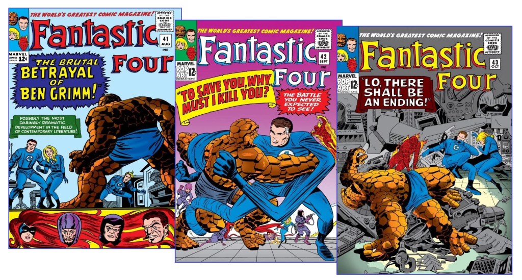 Ben snaps out of it. The spell breaks. He releases Reed and turns on the Frightful Four. The team rallies and defeats the villains – though Medusa escapes, spared by the Torch, who sees something sympathetic in her.