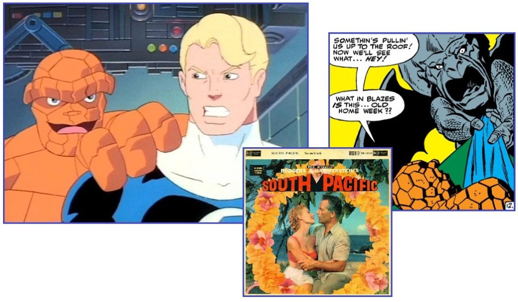 Ben’s best line this week: as he’s falling from a building, he grabs hold of a gargoyle on the way down – and promptly asks it what it’s looking at! He also sings “He’s gonna burn that red head out of his hair” to the tune of South Pacific’s ‘I’m Gonna Wash That Man Right Outa My Hair’ in regards to Johnny and Medusa.