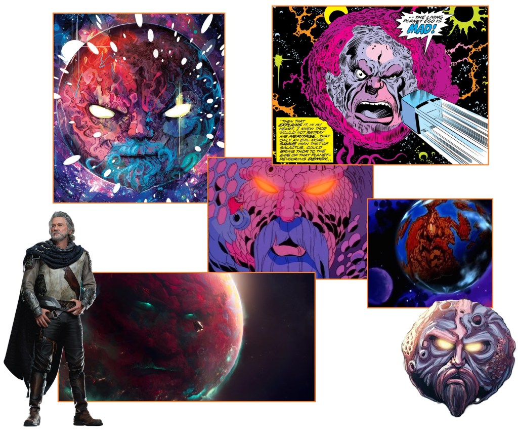 Ego’s most high-profile appearance came in Guardians of the Galaxy Vol. 2 (2017), where he was reimagined as a Celestial and the father of Peter Quill. Played by Kurt Russell, this version of Ego was charming, manipulative, and terrifying – a living planet with a human avatar and a plan to overwrite all life with himself. The film leaned into the emotional horror of Ego’s narcissism, making him less a cosmic threat and more a toxic parent writ large. He’s also appeared in What If…?, voiced again by Russell, and in various animated series and video games, always as a looming, planetary presence.