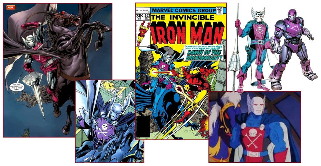 In Iron Man, Dreadknight is reimagined as one of Mandarin’s rotating henchmen – less tragic, more disposable. His Hellhorse is renamed “Nightwing” due to censorship, and his gothic backstory is mostly ignored. He shows up, gets knocked down, and vanishes. Later animated appearances, like Armoured Adventures, rework him into a literal army of stone knights – stripped of identity, reduced to obstacle. The original Bram Velsing is nowhere to be found.