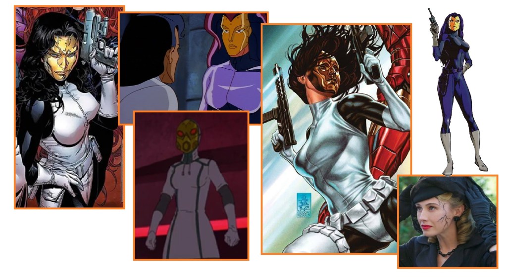 Introduced in Tales of Suspense #98 (1968), Masque quickly became one of Iron Man’s most complex adversaries. She’s not driven by conquest or chaos. She’s driven by identity – by the loss of it, the reconstruction of it, and the rage that comes when even love can’t restore it. Her relationship with Tony Stark is mythic in its tragedy: two brilliant minds, drawn together by intellect and pain, torn apart by legacy and loyalty. She’s been a lover, a saboteur, a reluctant ally, and a ghost in Stark’s machine.