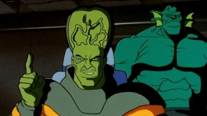 This episode marks the first instance of the Leader’s catchphrase: “So says the Leader!”