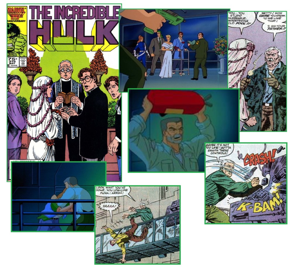 General Ross interrupting the wedding comes from Incredible Hulk #319.