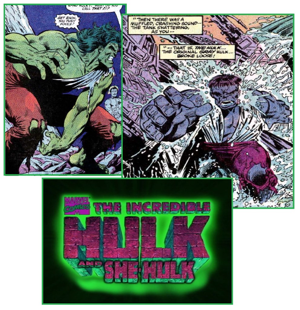 Rick being pushed into the Nutrient Bath by Thunderbolt Ross is taken from Incredible Hulk #324. The Gray Hulk also reappeared in that issue.