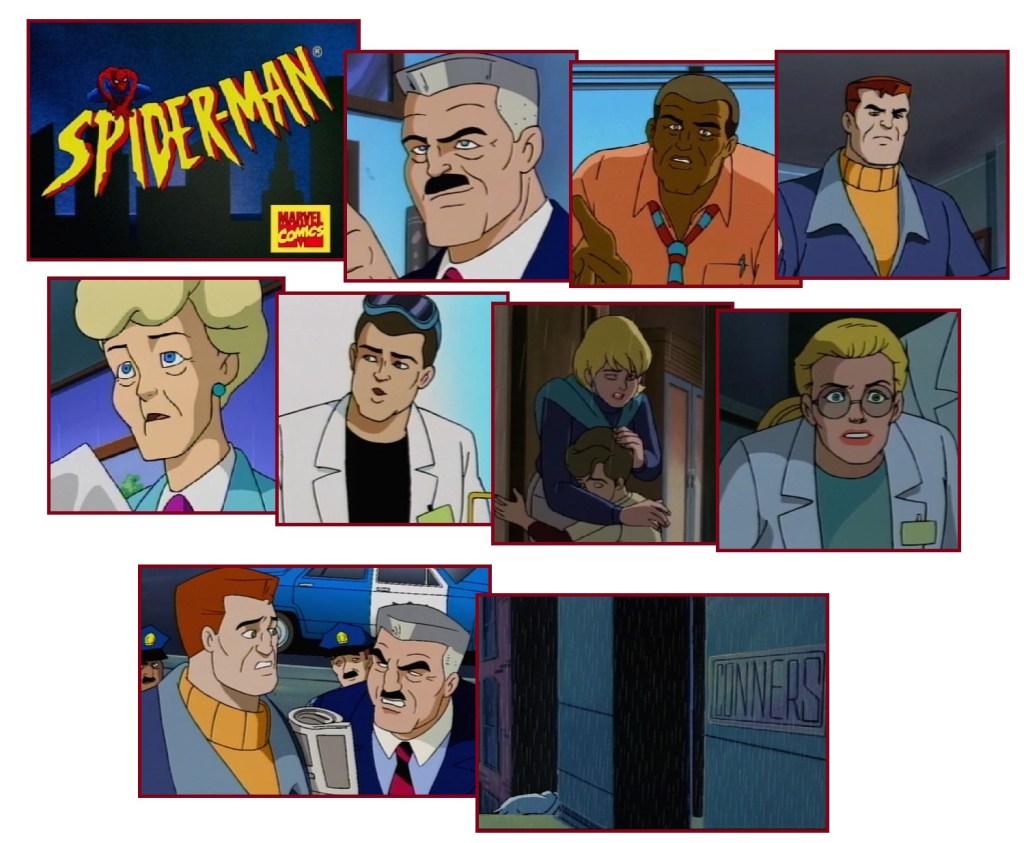 This episode boasts many first appearances of Spidey’s supporting cast: J. Jonah Jameson, Robbie Robertson, Eddie Brock, Aunt May, Curt, Margaret and Billy Connors and Debra Whitman. All recur more than once throughout the series.